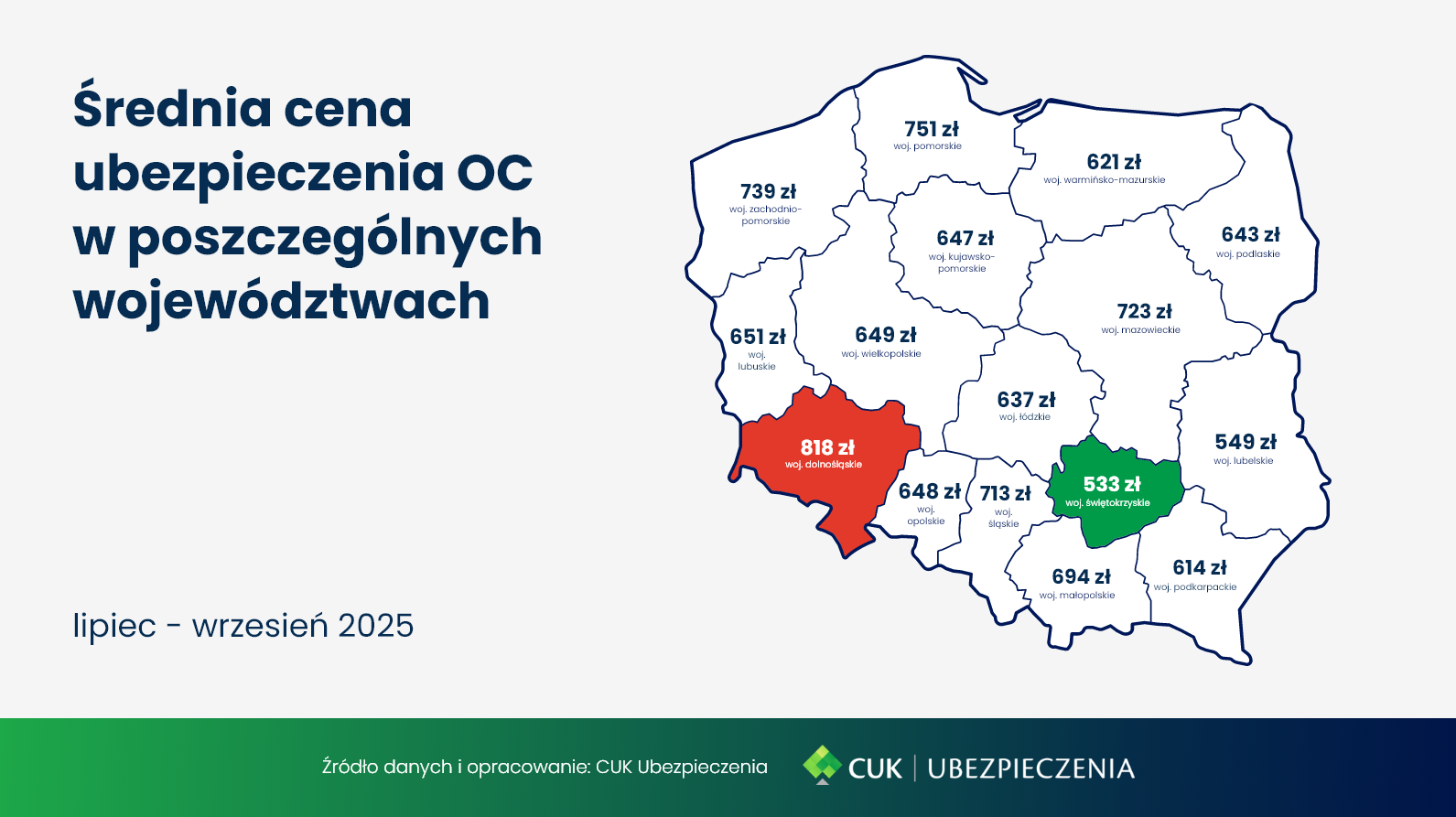 Jak wyglądają średnie ceny OC w zależności od województwa w Q3 2025 roku?