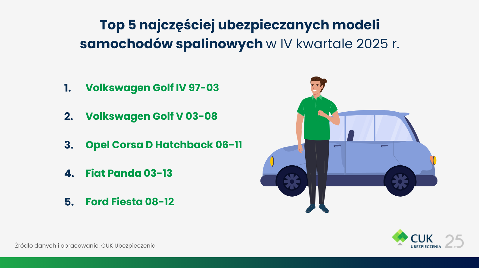 Jakie modele aut spalinowych były najczęściej ubezpieczane w Q4 2025 roku?