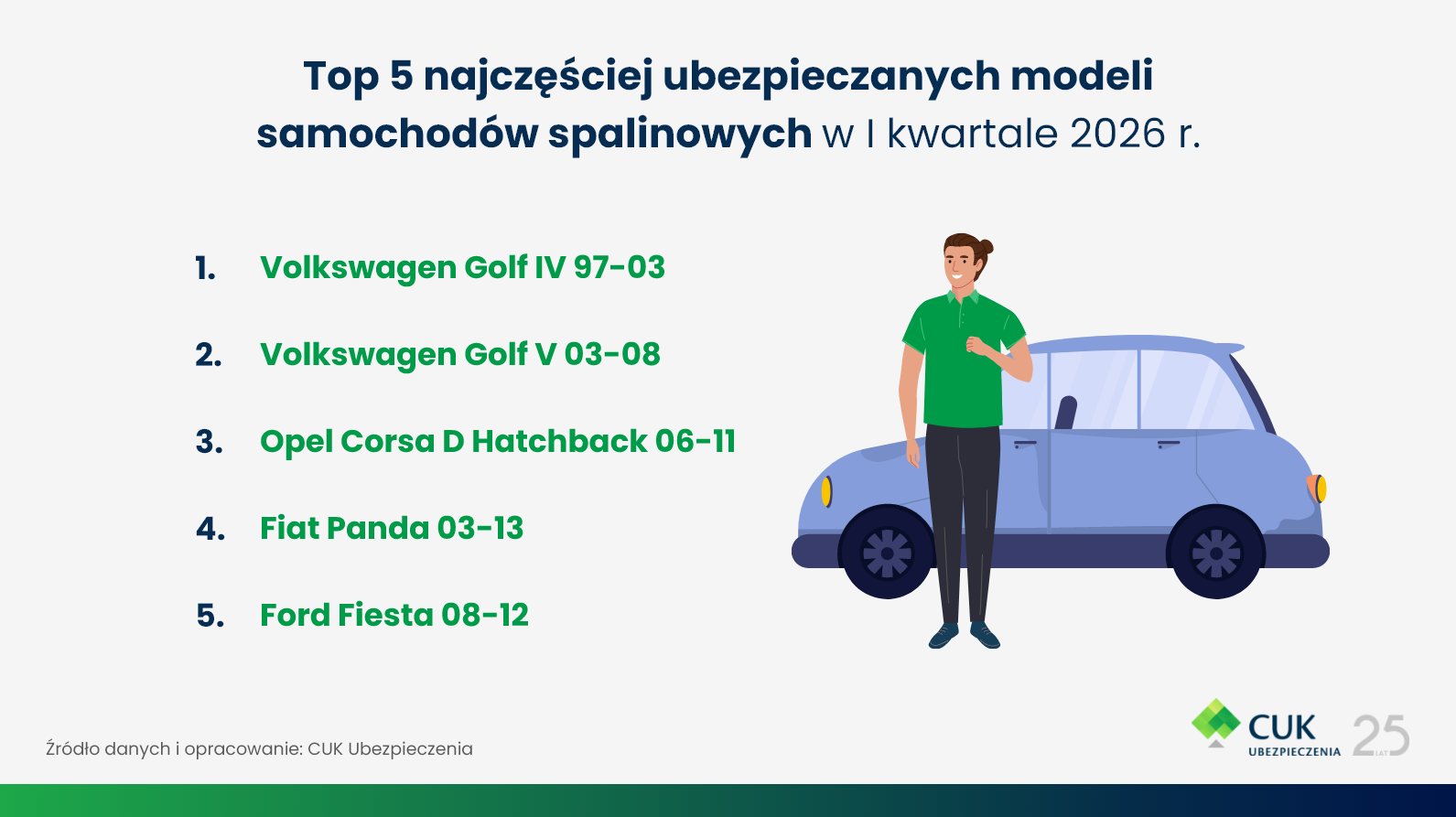 Jakie modele aut spalinowych były najczęściej ubezpieczane w Q1 2026 roku?