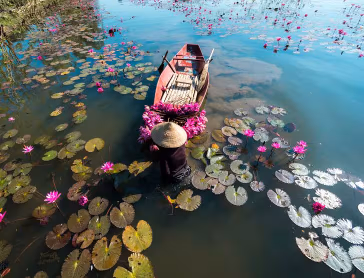 To południowa część kraju, w której Mekong rozdziela się na liczne rzeki i kanały, tworząc jeden z największych systemów wodnych w Azji. Życie mieszkańców w dużej mierze skupia się tu na wodzie – targi odbywają się na łodziach, a wiele domów stoi na palach. Rejs wąskimi kanałami, wizyta w sadach i lokalnych gospodarstwach pozwalają obserwować codzienność, która znacznie różni się od tej w dużych miastach.