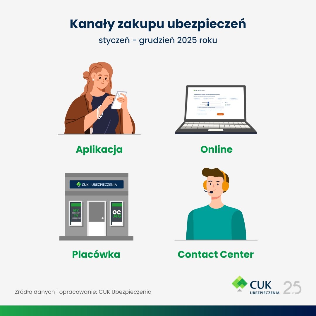 Rok 2025 potwierdził rosnącą rolę kanałów cyfrowych. Dynamicznie rośnie sprzedaż online i w aplikacji mobilnej CUK, która przypomina o kończącej się polisie, ale też umożliwiają obsługę szkód i formalności. Jednocześnie coraz więcej klientów działa w modelu hybrydowym – porównuje ceny online, a finalizuje zakup w placówce lub odwrotnie. To ciekawy trend, który stoi w kontrze do powszechnego przekonania o odejściu do digital i uproszczeniu ścieżki zakupowej w grupie polis OC/AC.
